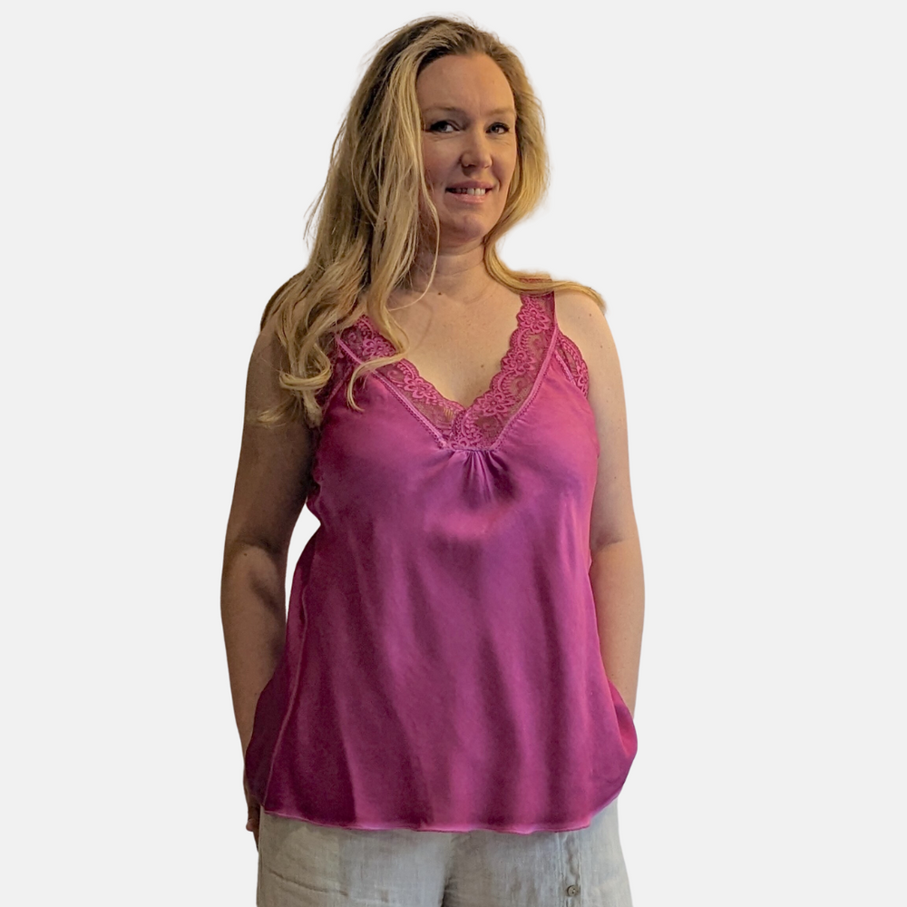 Our Lacey Cami is a staple piece in any wardrobe, layer it underneath a knit or wear it on its own for a more bold look.