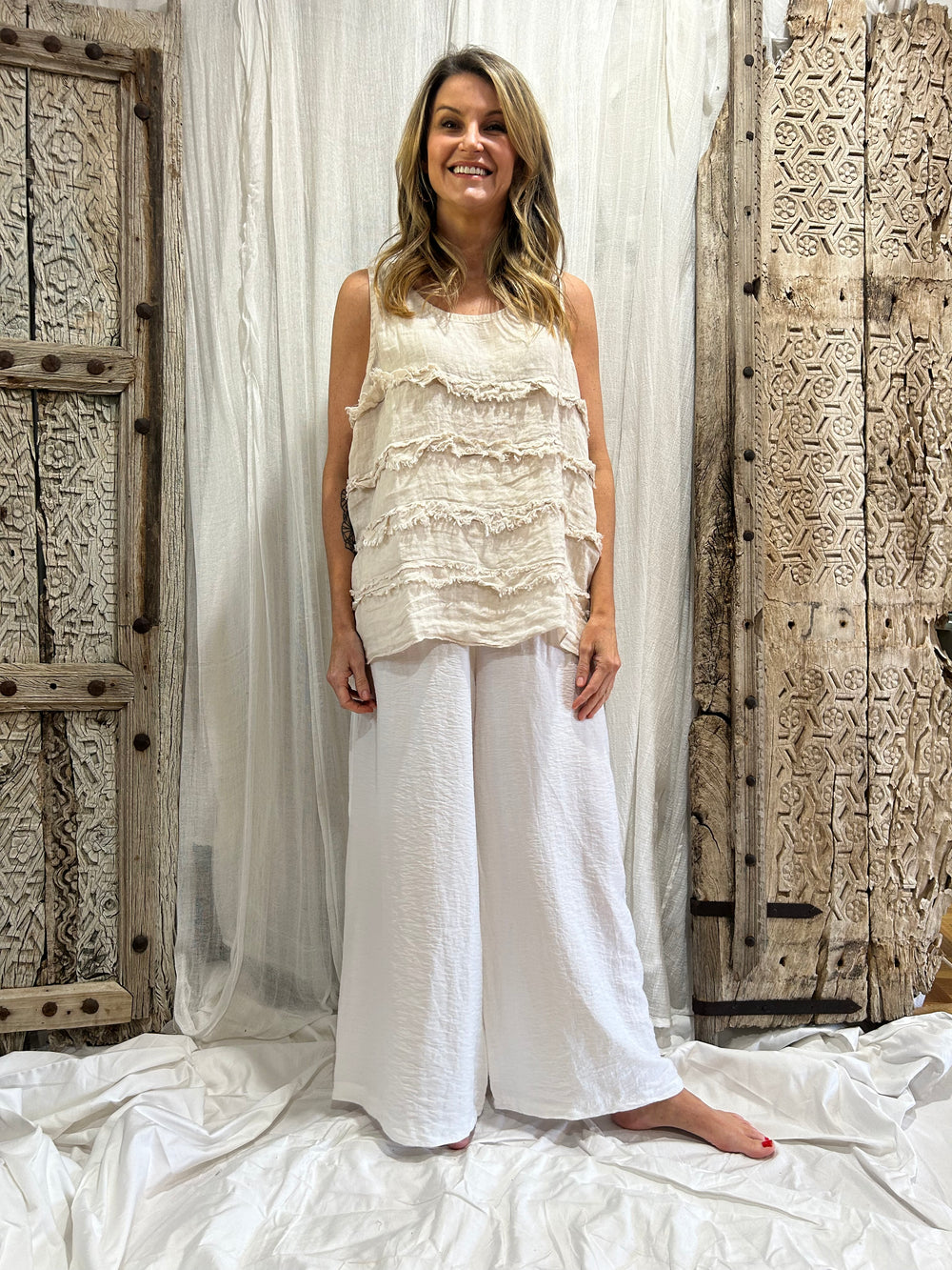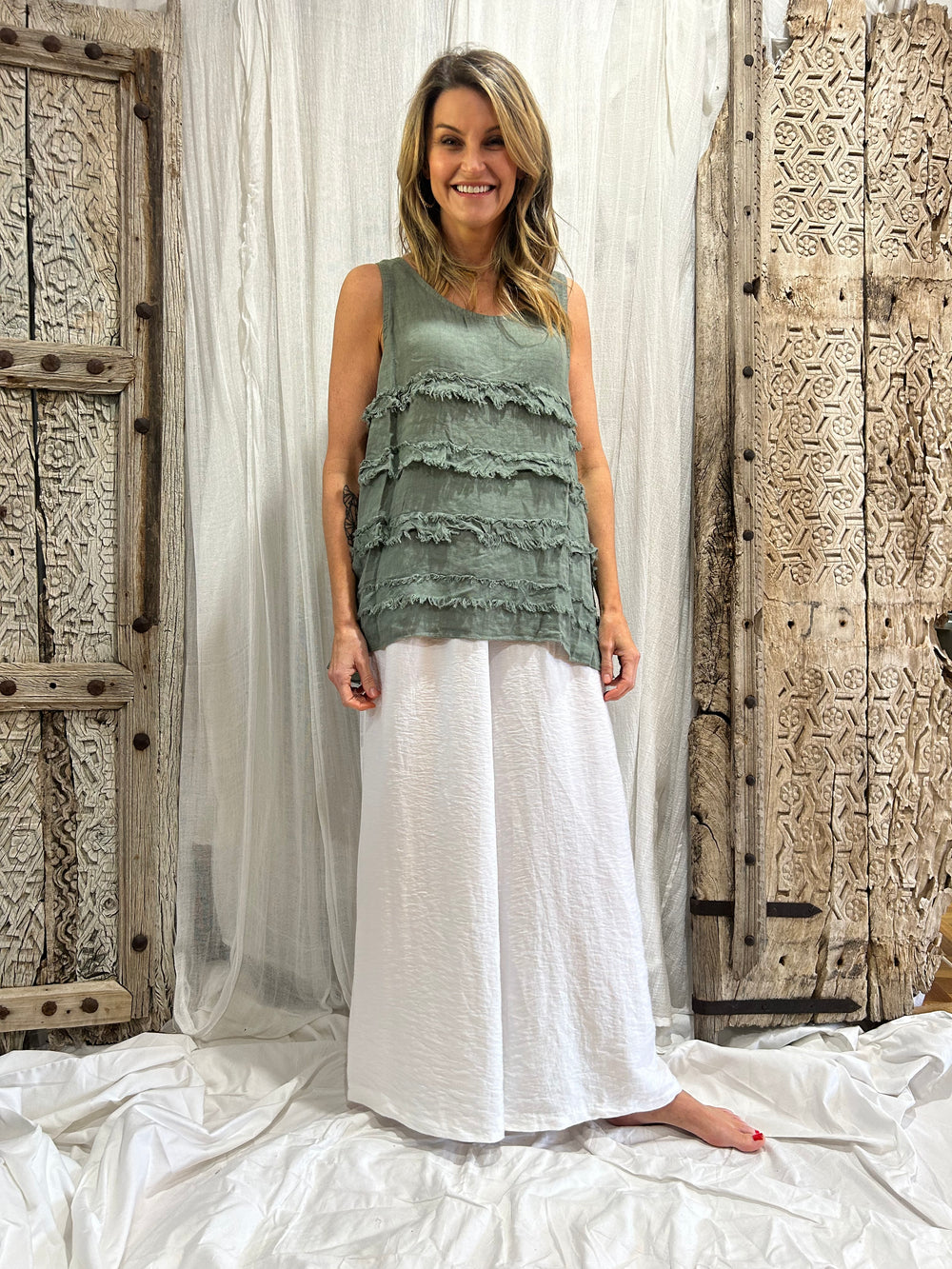 The Ayla is a gorgeous ruffle linen singlet