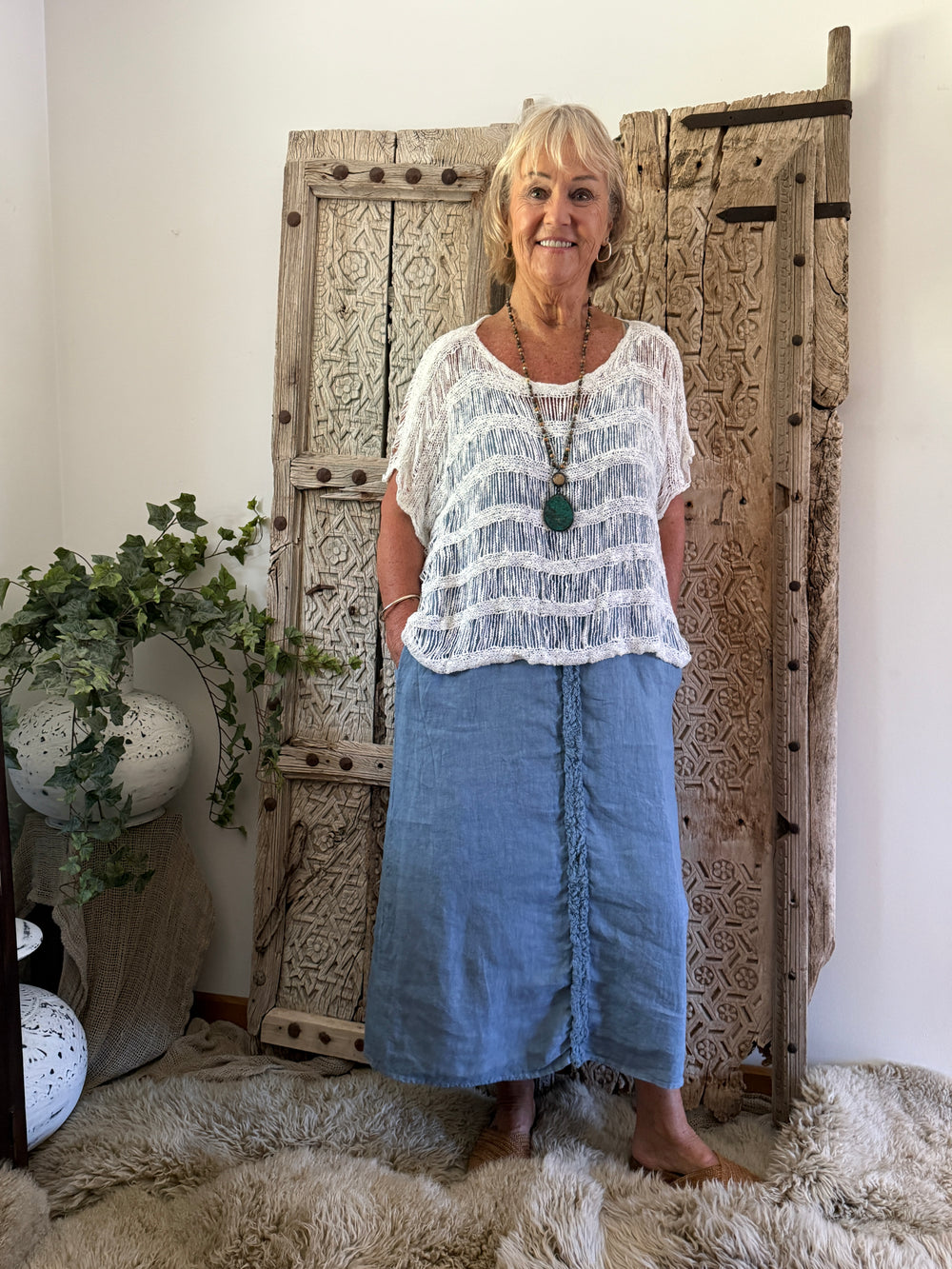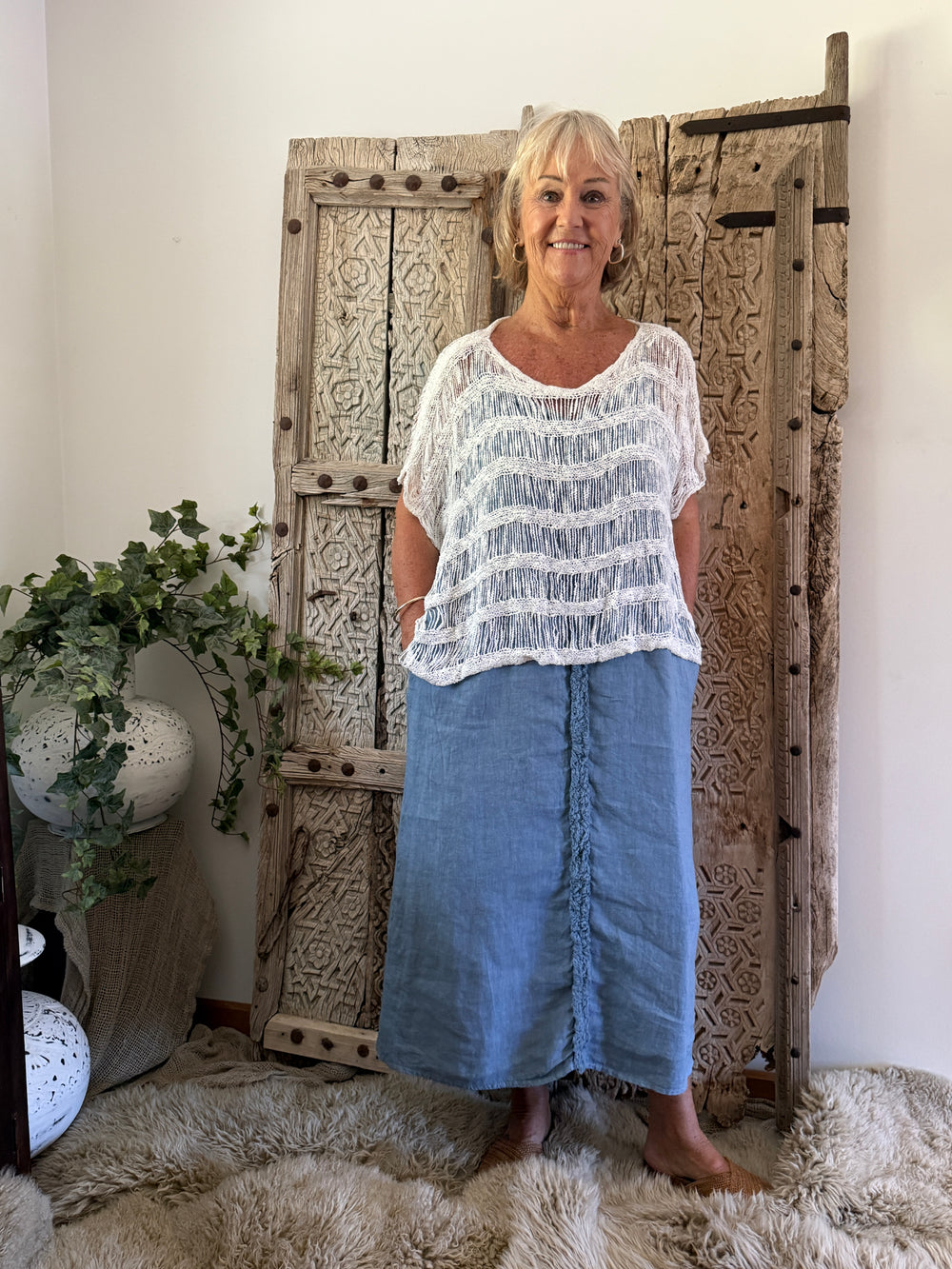 Perfect for warm days, the Lara Linen dress is such a versatile piece it can be worn on its own for an easy, breezy outfit or layered over leggings or pants for year-round wear. Length | 88cm Width | 57cm Features: 100% breathable...