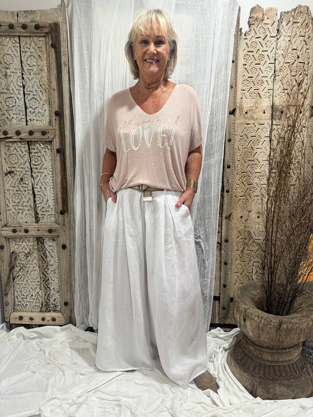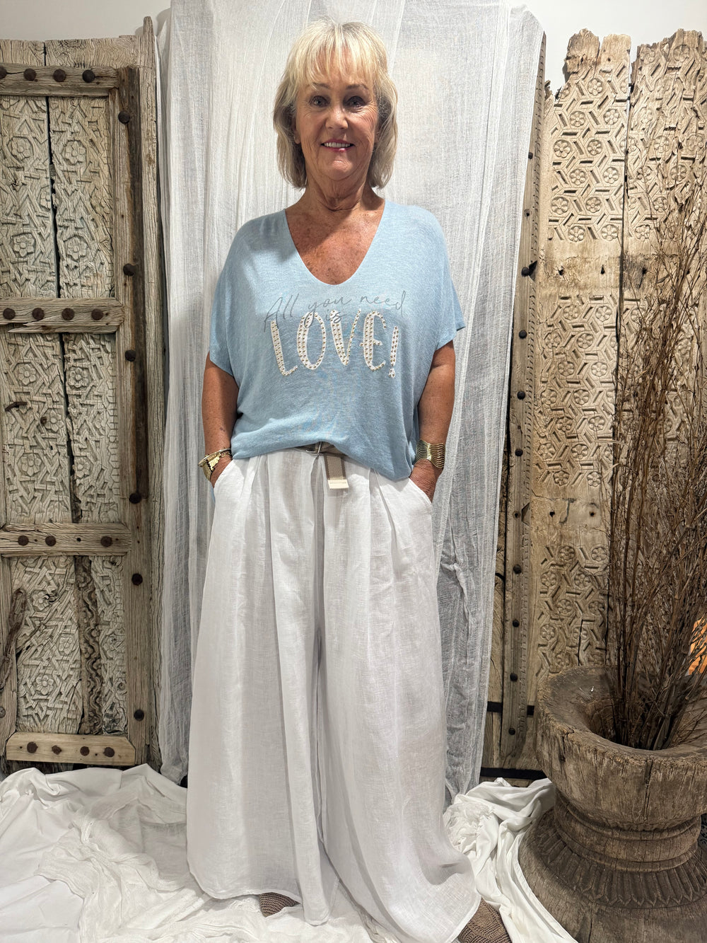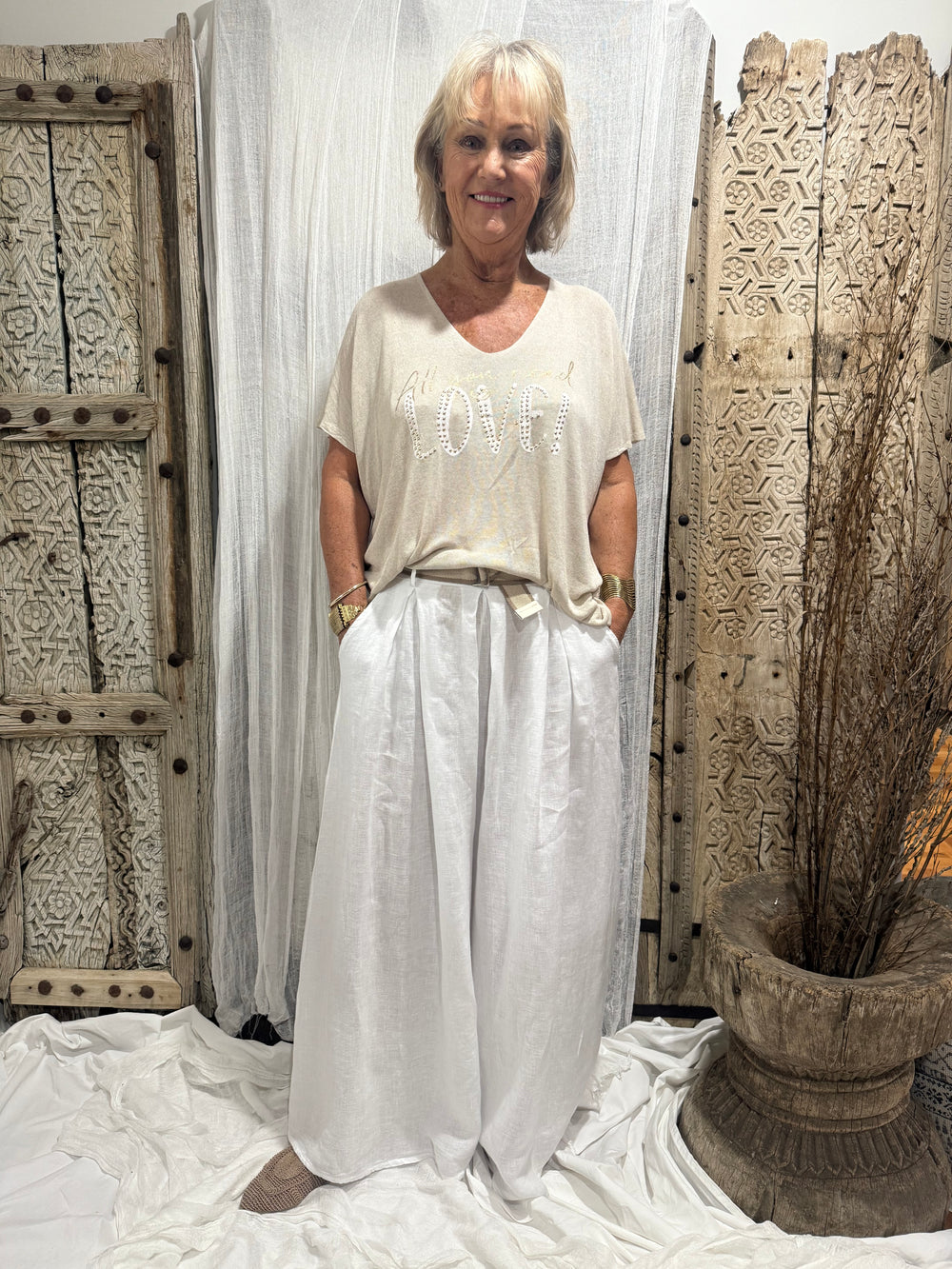 This gorgeous fine knit linen mix top is a great wardrobe staple! It’s Casual but fun, one of our new favourites. It features a flattering V Neck with drop style sleeves.