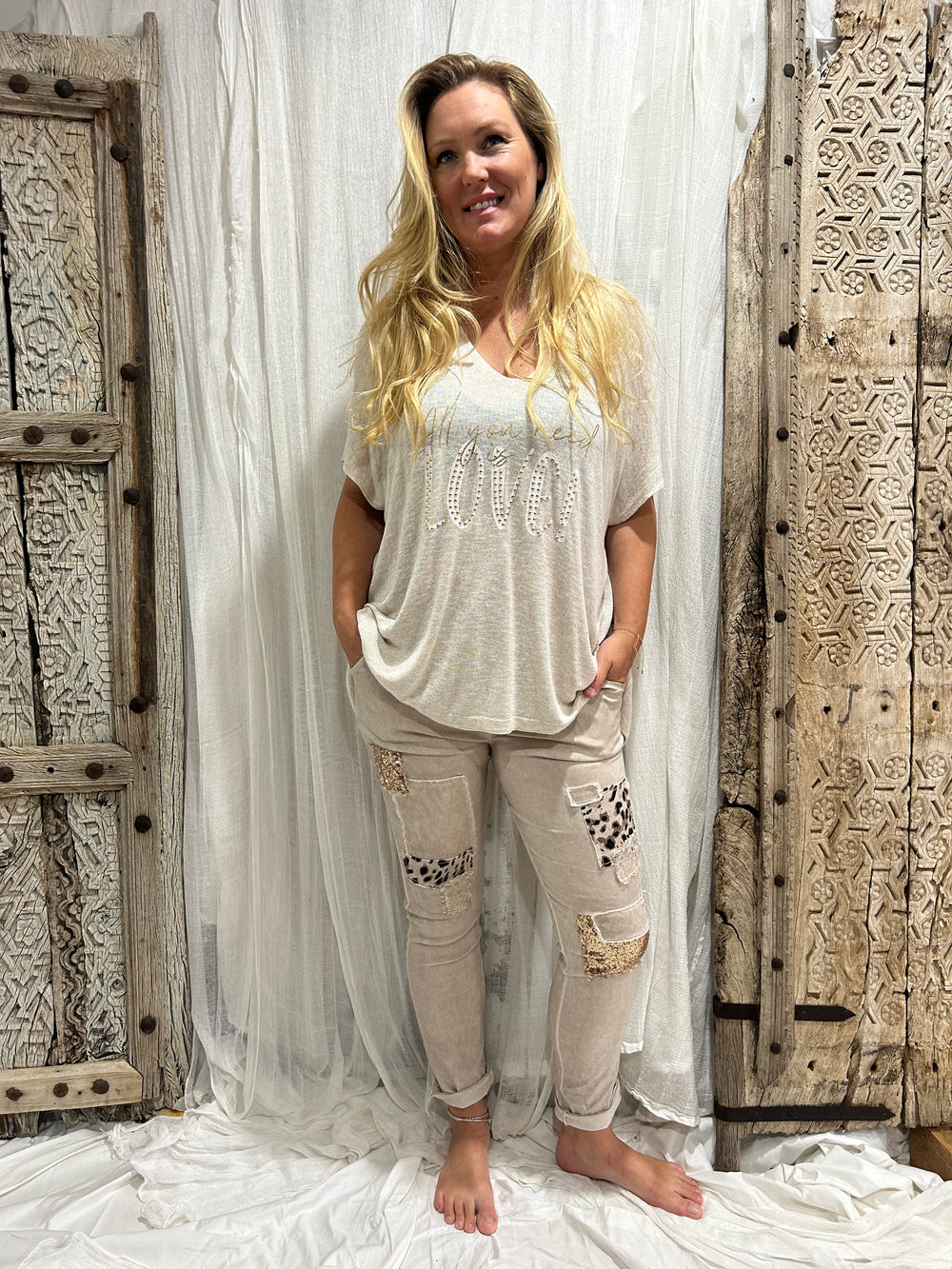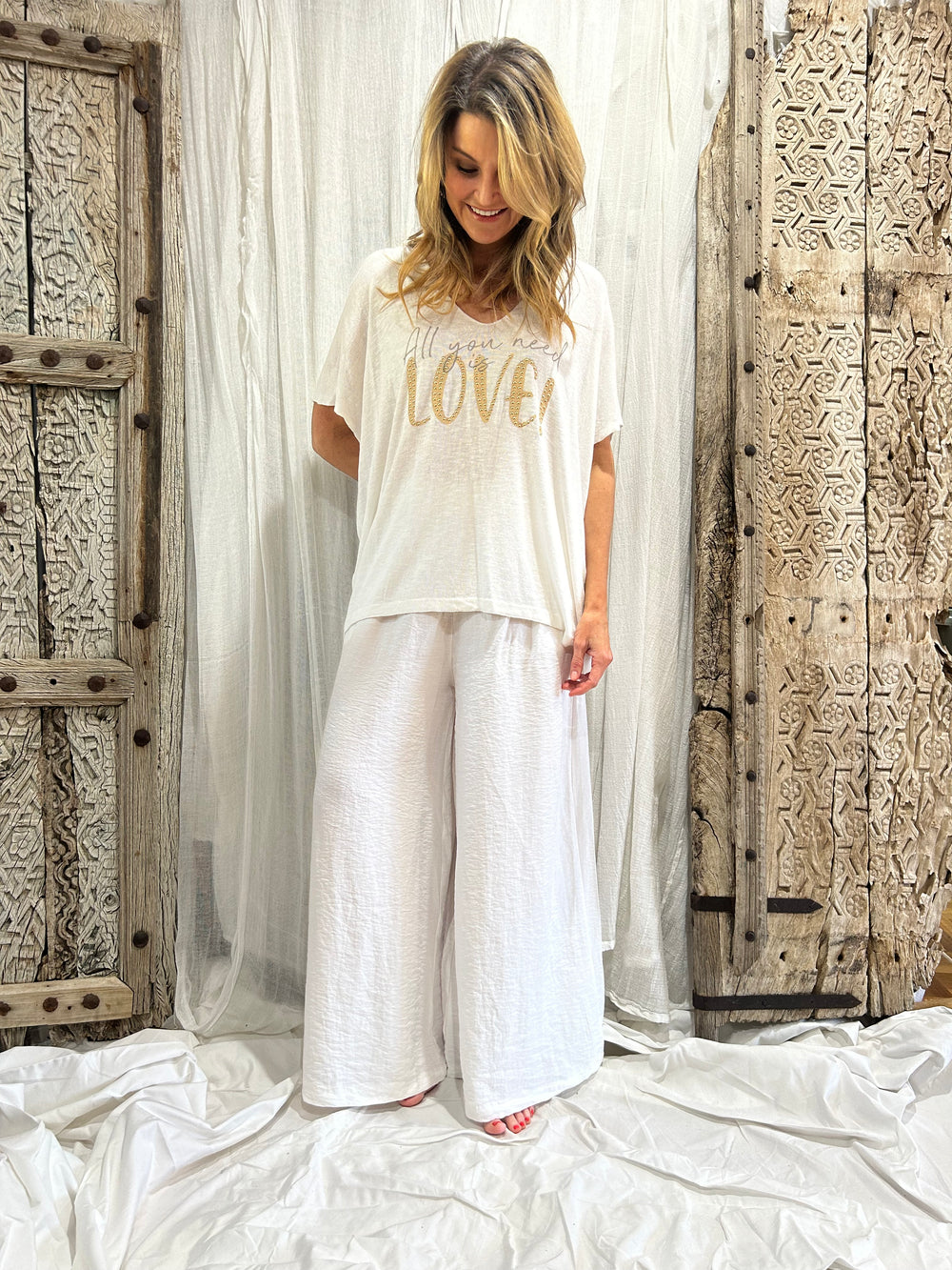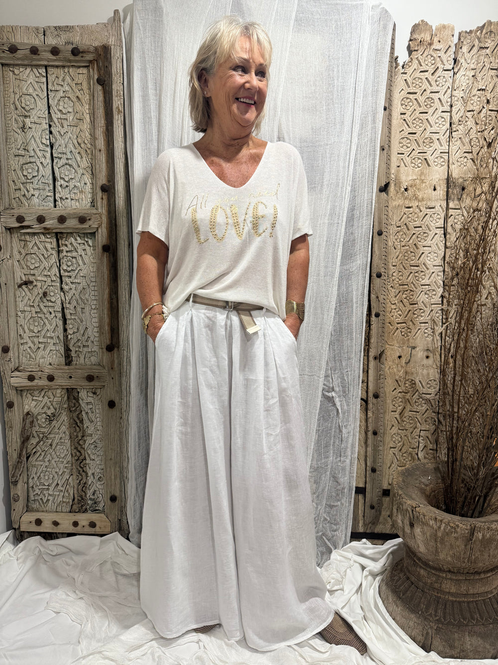 This gorgeous fine knit linen mix top is a great wardrobe staple! It’s Casual but fun, one of our new favourites. It features a flattering V Neck with drop style sleeves.