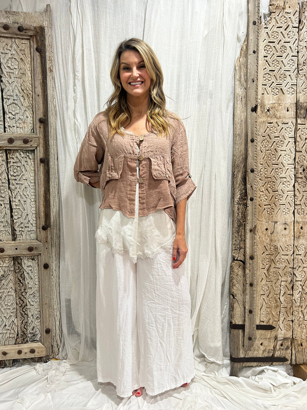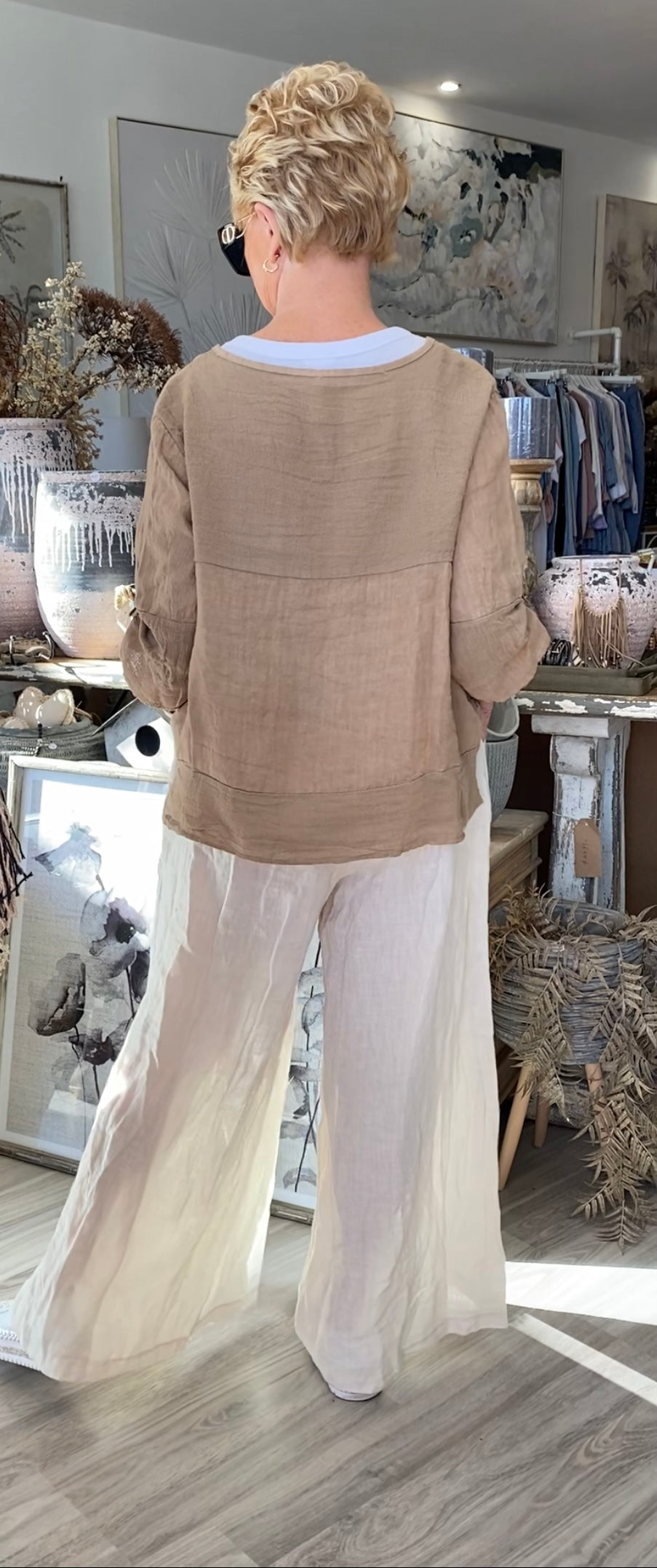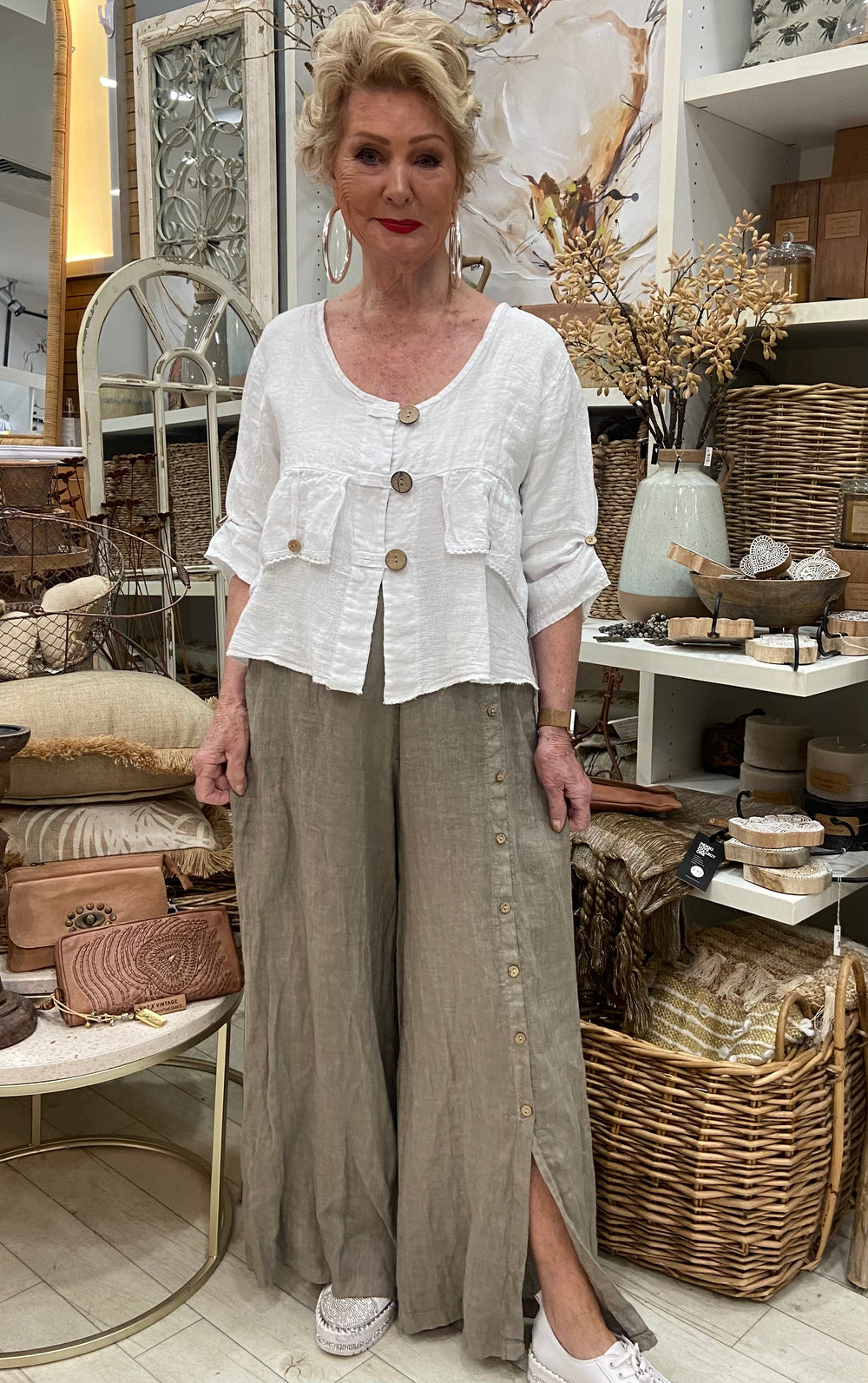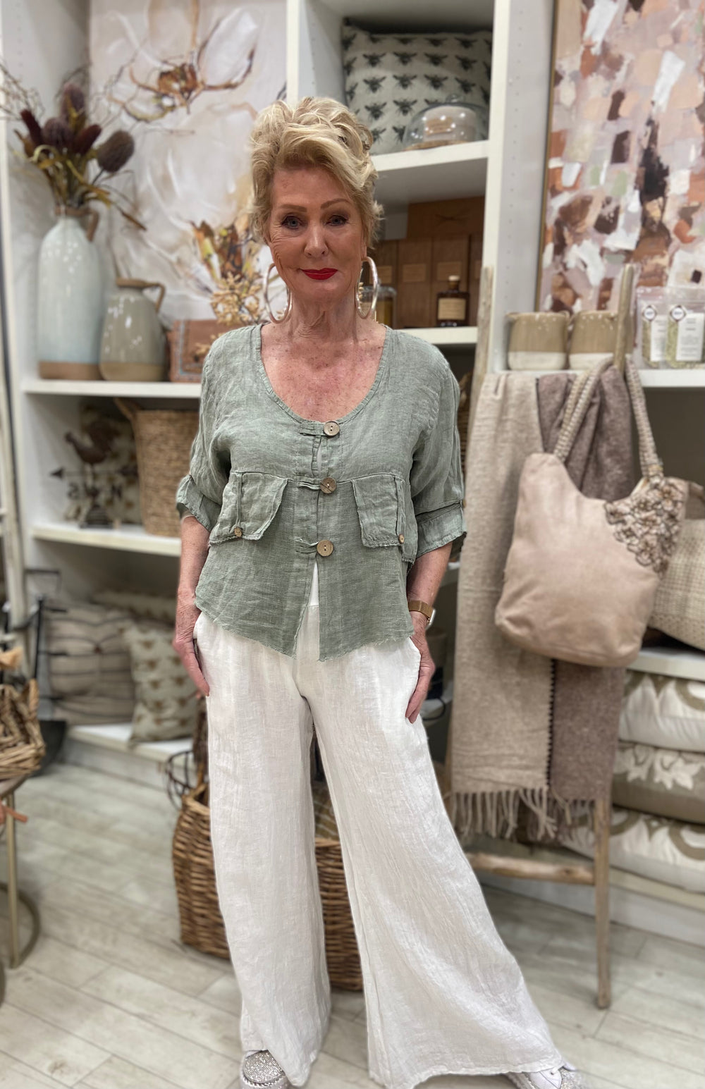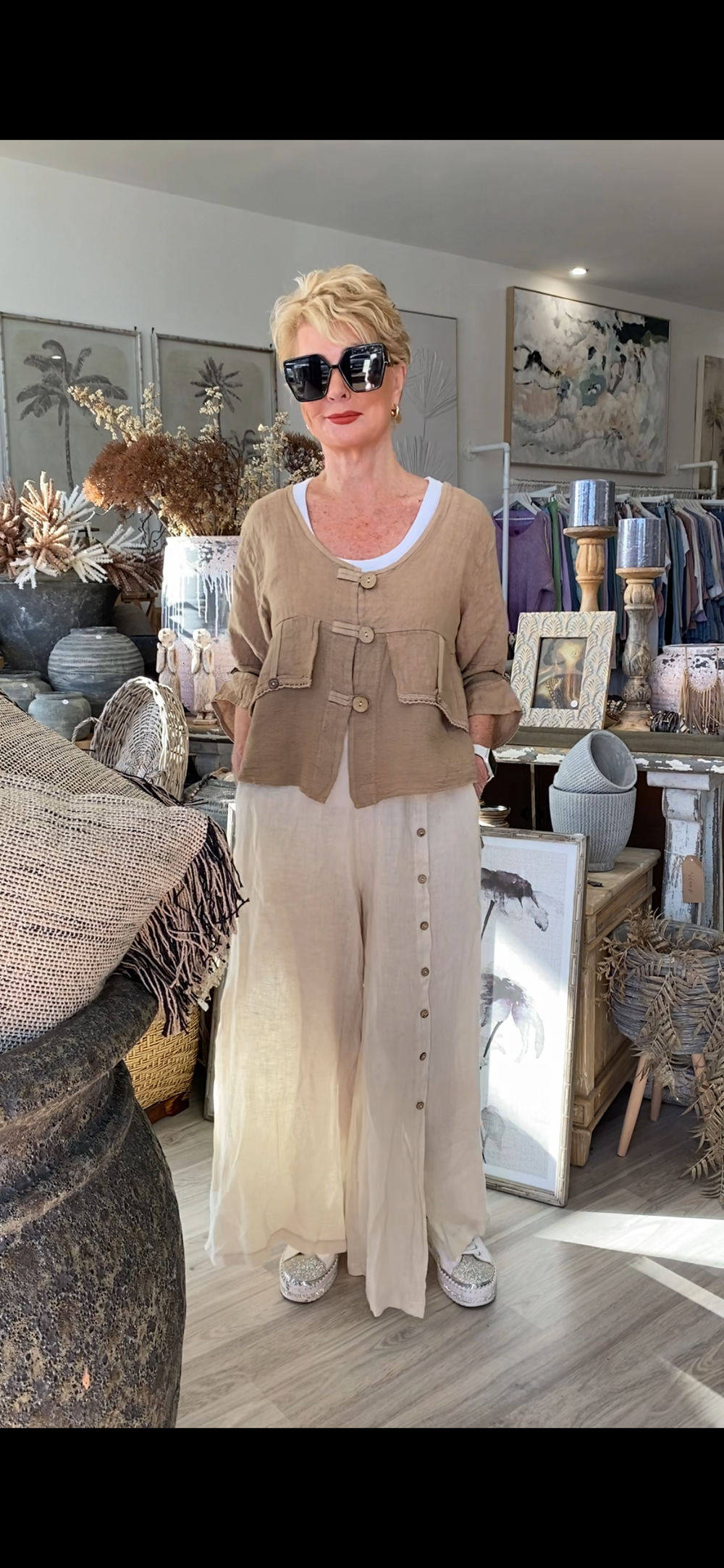 This top is light and comfortable for everyday wear, the linen and gauze fabric being soft to the skin and suitable for all occasions. This top has 3/4 sleeves and is a stylish button-up top and is the perfect addition to any wardrobe.
