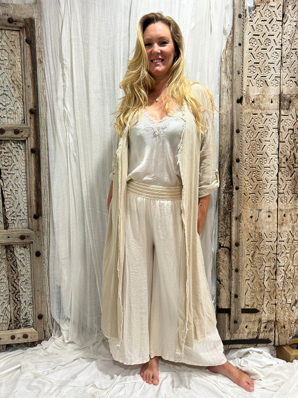 Elevate your everyday look with the Willow open-knit cardigan, a versatile layering piece designed for effortless style. The airy crochet weave keeps it breathable and comfortable, while the button-front closure allows you to wear it open or closed for different looks. With its...