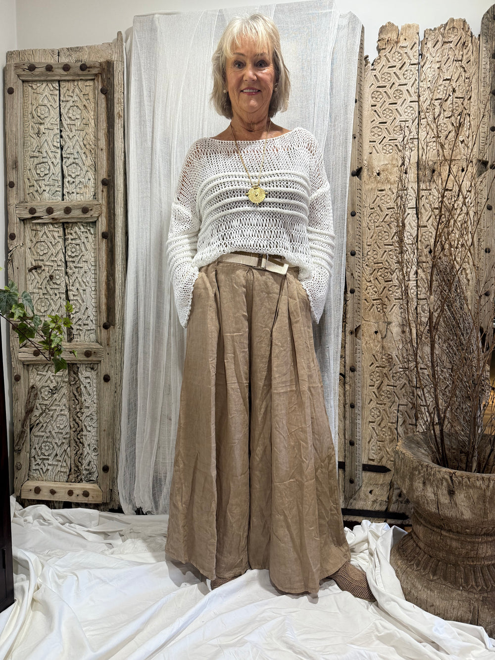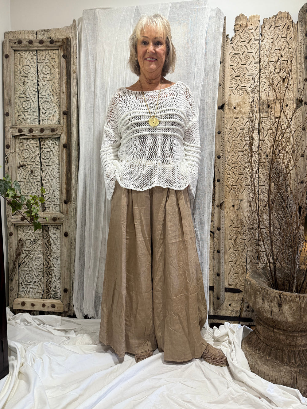 The Evie top is airy, and effortlessly stylish, this open-knit pullover is the perfect layering piece for every season. Designed with a relaxed silhouette, it features a wide neckline, dropped shoulders, and long sleeves that bring a touch of casual elegance. The weave makes it easy to style over tanks, camisoles, or dresses, giving you endless versatility.