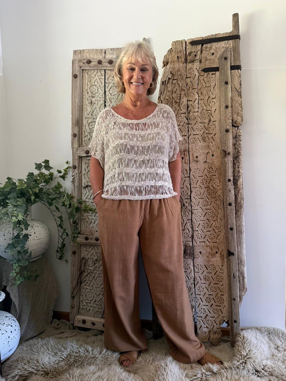 Elevate your everyday look with the Willow open-knit cardigan, a versatile layering piece designed for effortless style. The airy crochet weave keeps it breathable and comfortable, while the button-front closure allows you to wear it open or closed for different looks. With its...