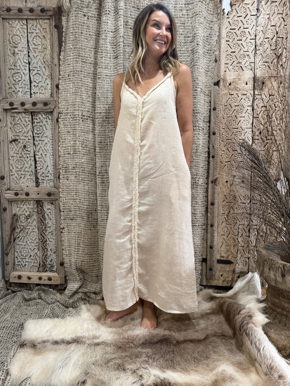 A beautiful linen thin strap dress